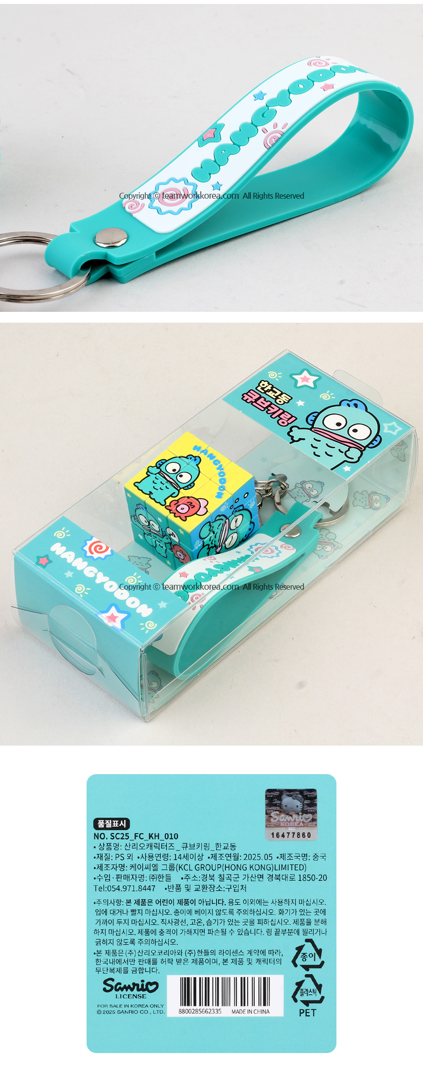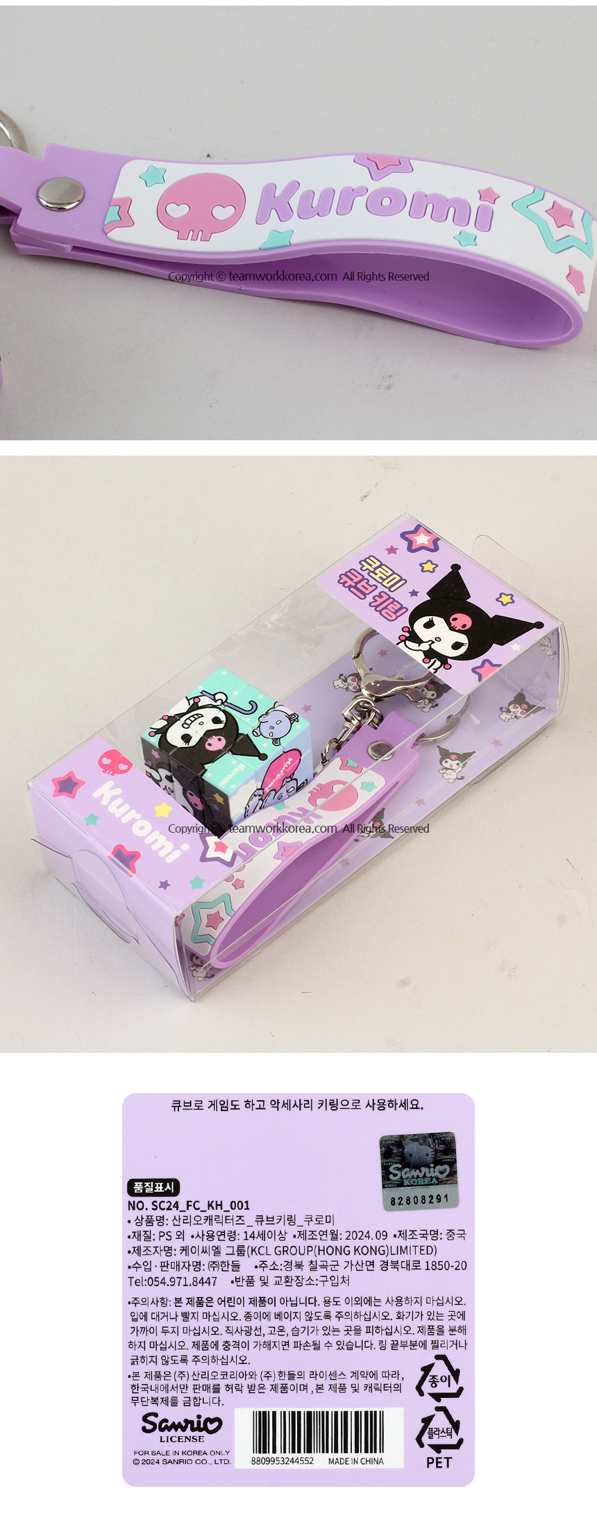 쿠로미 8809953244552,시나모롤 8809953244569,마이멜로디 8800285662328,헬로키티 8800285662311,한교동 8800285662335